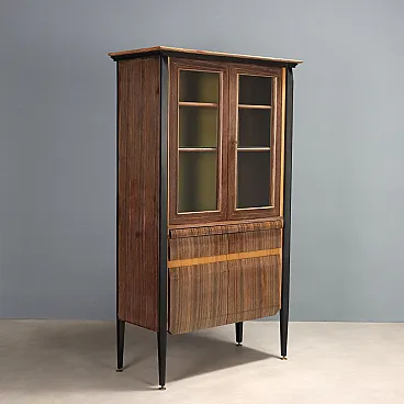 Credenza in impiallacciatura di legno esotico e ottone, '900