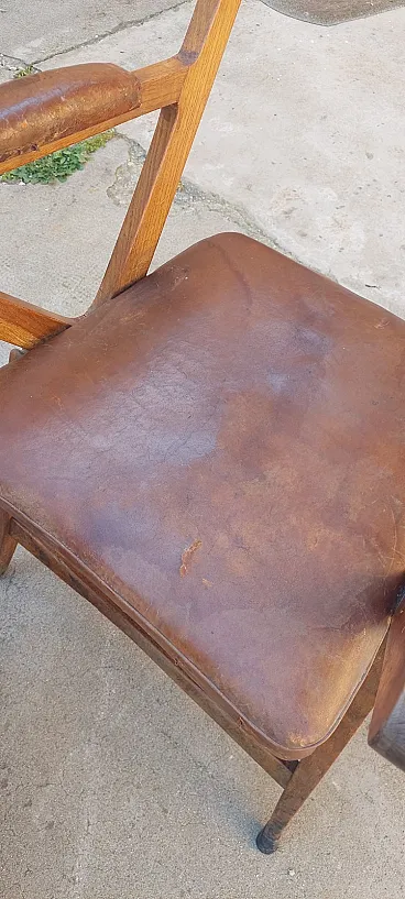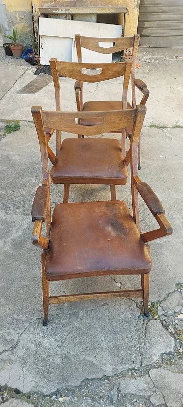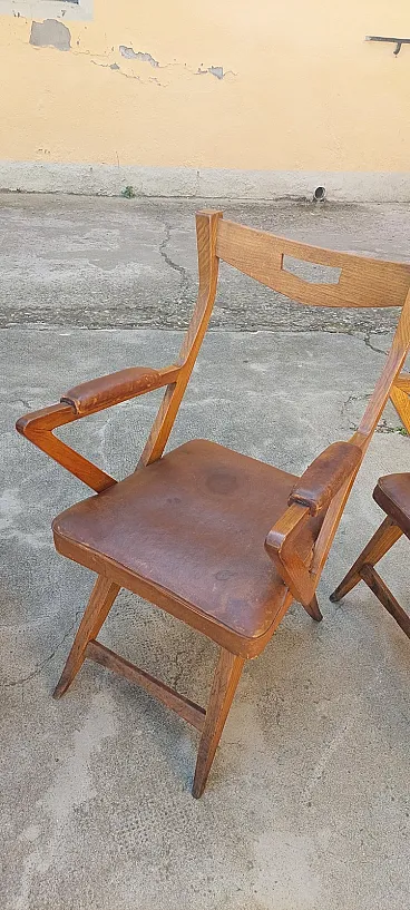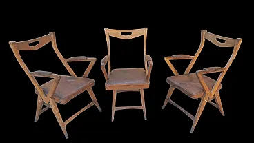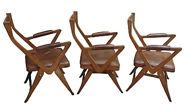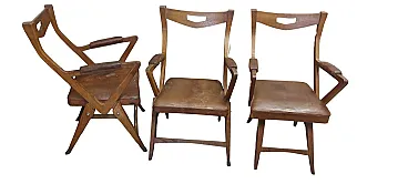 3 Poltroncine in rovere con braccioli e schienale mossi, anni '50