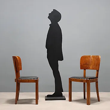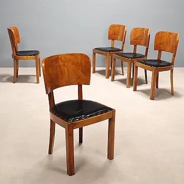 5 Sedie da pranzo in legno e pelle, '900