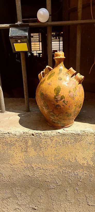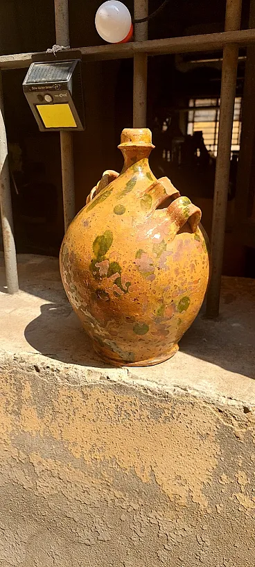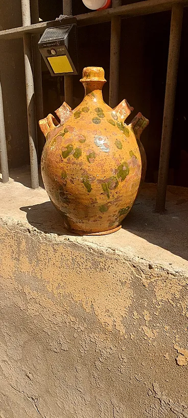 Fiasca da pellegrino in terracotta smaltata, '800