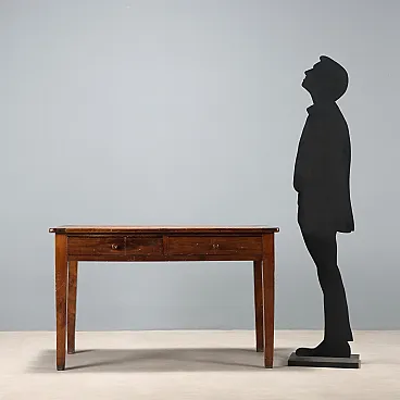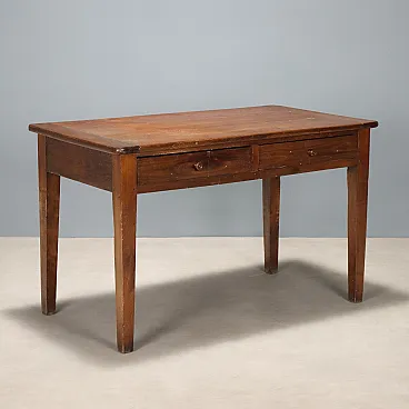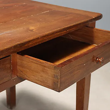 Tavolo in rovere con due cassetti, metà '800