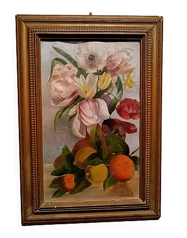 Fiori, Limoni, Arance di A. Sambuchi, olio su cartone, fine '800