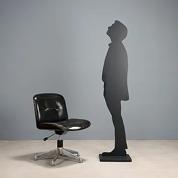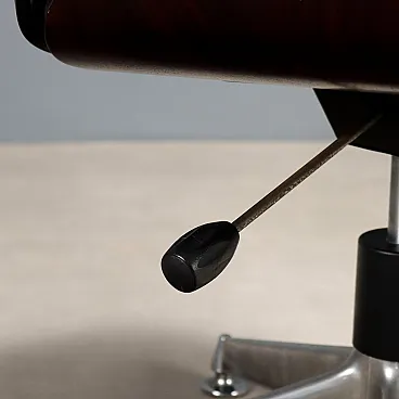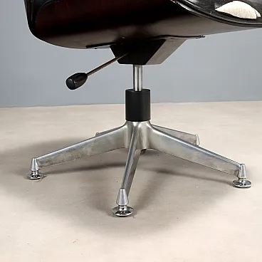 Poltrona con gambe in metallo, seduta in pelle e scocca in legno, '900