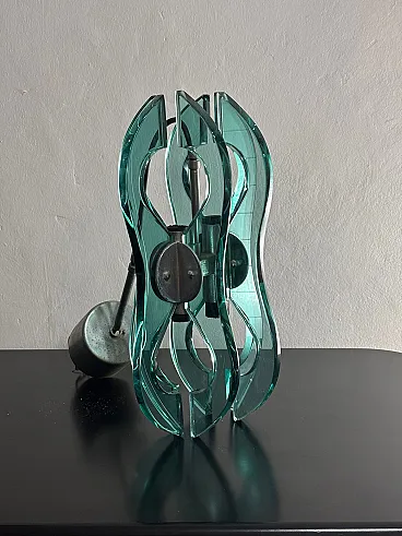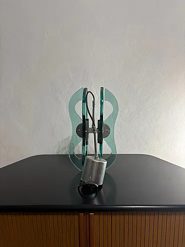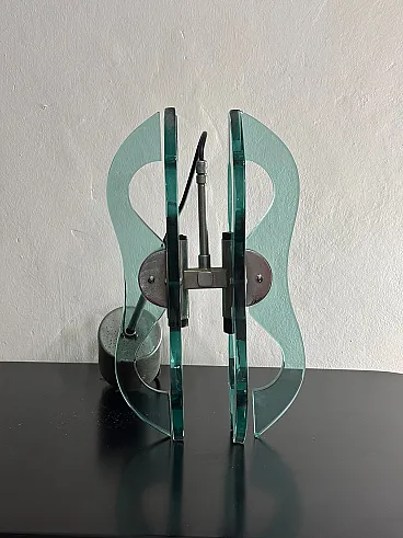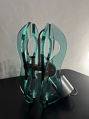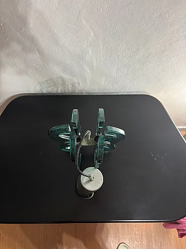 Lampadario a sospensione vetro e accaio, anni '70
