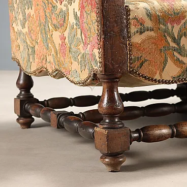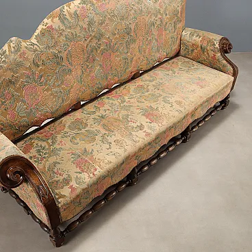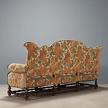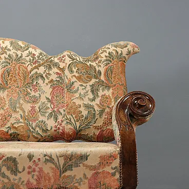 Divano barocco in noce e tessuto ricamato, fine '700