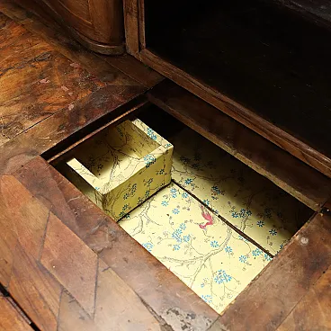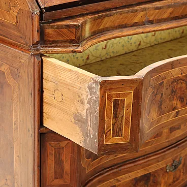 Cassettone barocco in noce, acero, olivo, abete e bronzo, '600