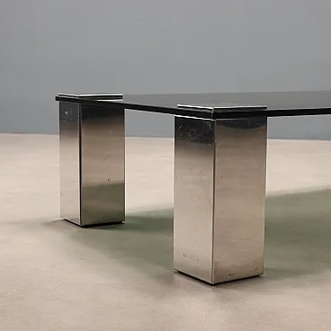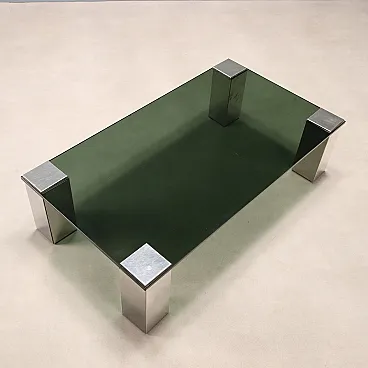 Tavolino con piano in vetro fumé e gambe in metallo cromato, '900