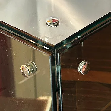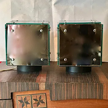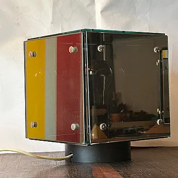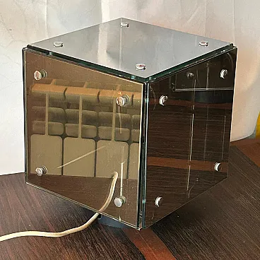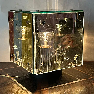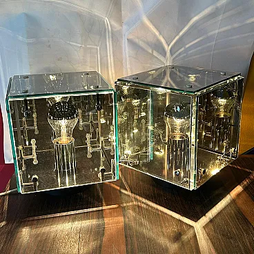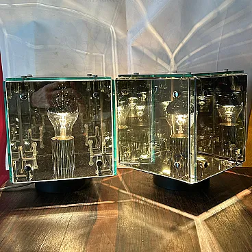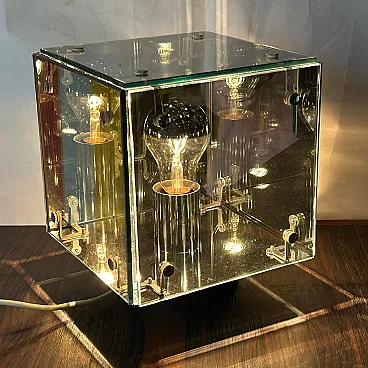 Le Prismar sono lampade da tavolo iconiche dell’avanguardia italiana anni ’70, disegnate con un’estetica minimalista ma di forte impatto. La struttura cubica in vetro specchiato funge da superficie riflettente e, una volta accesa, trasforma la luce in un’esperienza visiva immersiva, con riflessi infiniti che esaltano lo spazio circostante. Il design integra vetro argentato, elementi cromati e tecnologia elettrica standard per creare un oggetto che è tanto un pezzo di arredo quanto una scultura luminosa. La produzione originale è degli anni 1970 per Nucleo Sormani, una firma significativa del design italiano moderno. Oggi rappresenta un pezzo ricercato da collezionisti e appassionati di design vintage di alto profilo. La lampada Prismar nasce all’interno del clima di forte sperimentazione che caratterizzò il design italiano dei primi anni Settanta, periodo in cui luce, materia e percezione visiva diventano elementi centrali del progetto. Il cubo in vetro specchiato non è pensato come semplice involucro, ma come dispositivo ottico: la luce si moltiplica, si riflette e crea un effetto di profondità che supera la funzione illuminotecnica tradizionale. Prismar si colloca così tra gli esempi più interessanti di lampade-sistema, in cui l’oggetto assume una dimensione quasi architettonica e dialoga attivamente con lo spazio circostante. Lo Studio A.R.D.I.T.I. fu un collettivo di progettazione italiano attivo all’inizio degli anni Settanta, formato da Trassinelli, Gamberini e Mazzoni. Il gruppo operò in un contesto culturale orientato alla ricerca, privilegiando forme essenziali e soluzioni non convenzionali, soprattutto nell’ambito dell’illuminazione. I loro progetti si distinguono per l’uso consapevole dei materiali industriali e per l’attenzione agli effetti percettivi, anticipando alcune riflessioni che diventeranno centrali nel design concettuale degli anni successivi. Sebbene l’attività del gruppo sia stata relativamente breve, le opere firmate A.R.D.I.T.I. sono oggi considerate rappresentative di una stagione sperimentale di grande rilevanza. Nucleo Sormani rappresentò l’anima più sperimentale dell’azienda Sormani, storica realtà italiana dell’arredamento e del design del secondo Novecento. Attraverso questa divisione, l’azienda promosse progetti innovativi, spesso affidati a giovani designer e gruppi di ricerca, dando spazio a linguaggi radicali e non convenzionali. Le produzioni Nucleo si distinguono per l’alta qualità costruttiva e per l’approccio pionieristico, rendendo oggi questi oggetti particolarmente apprezzati nel mercato del design vintage e da collezione. N.B.: Nonostante le condizioni eccellenti (quasi intonse) delle lampade, presentano cavi di alimentazione non identici; uno dei due è stato sostituito nel tempo. La modifica è coerente con l’età dell’oggetto e non incide sulla funzionalità.