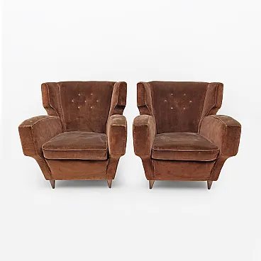 Coppia di poltrone in velluto Melchiorre, anni '50