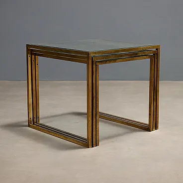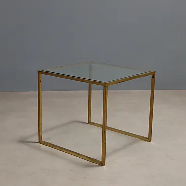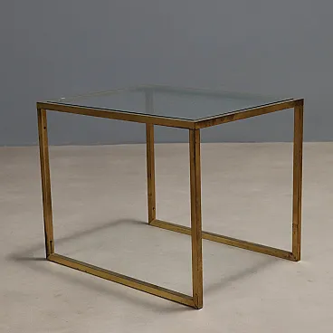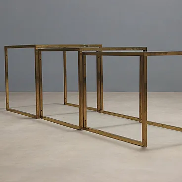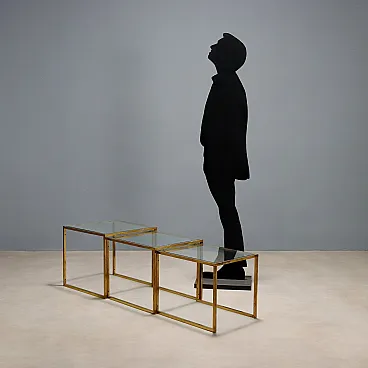 3 Tavolini con struttura in ottone e piani quadrati in vetro, '900