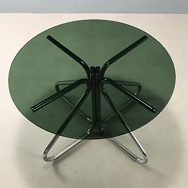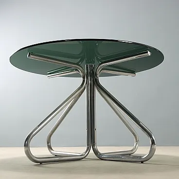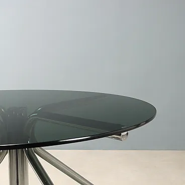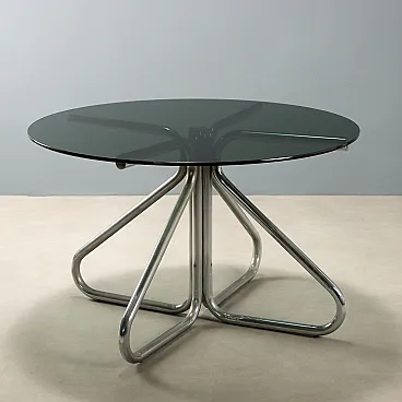Tavolo con piano in vetro fumé e gambe in tubolare cromato, '900