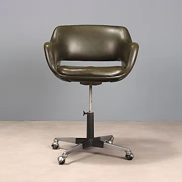 Poltroncina in espanso, similpelle e metallo smaltato e cromato, '900
