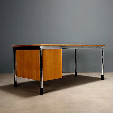 Scrivania in legno, metallo cromato e plastica, '900