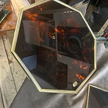 Vassoio e sottobicchieri in finta tartaruga, lucite e ottone, anni '70