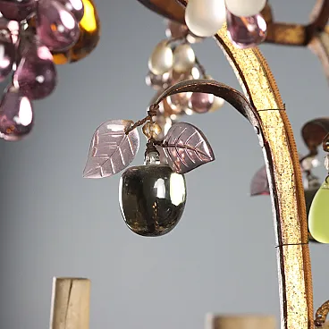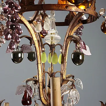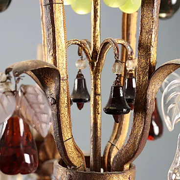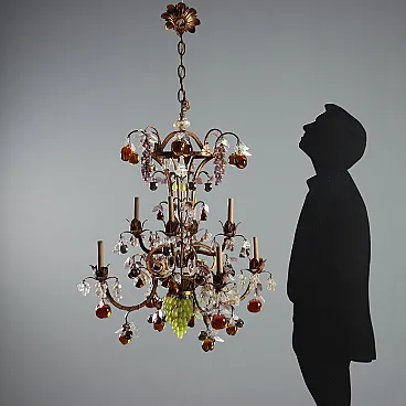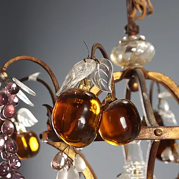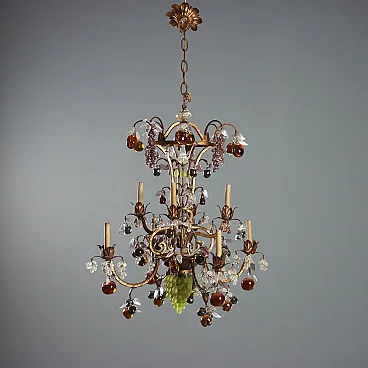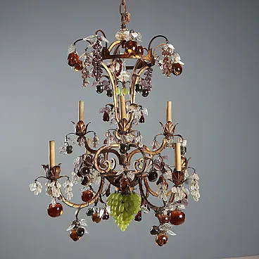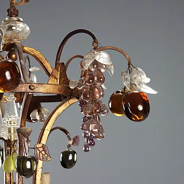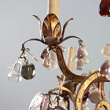 Lampadario in stile Maria Teresa in ferro e vetro, primo '900