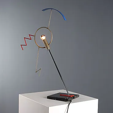 Lampada Valencia in marmo, acciaio nichelato e laccato, '900