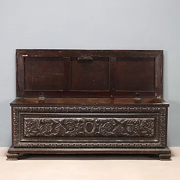 Cassapanca in abete tinto noce, fine '800