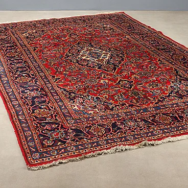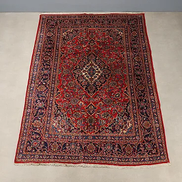 Tappeto Keshan in cotone e lana, nodo grosso, fatto a mano, '900