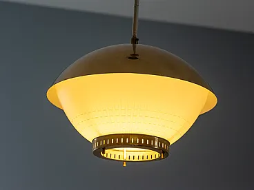 Lampada a sospensione in ottone con vetro opalino inciso, metà '900 6