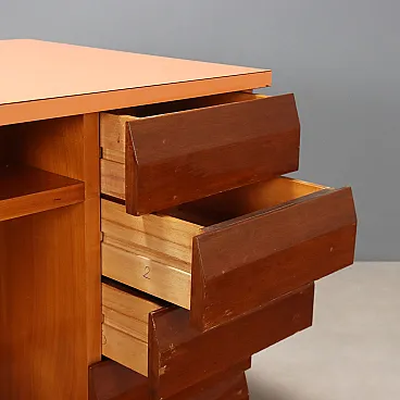 Scrivania con piano, cassetti e vani portaoggetti in formica, '900