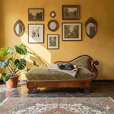 Dormeuse in noce con seduta e schienale imbottiti, metà '800