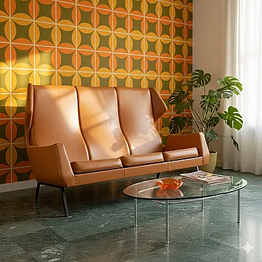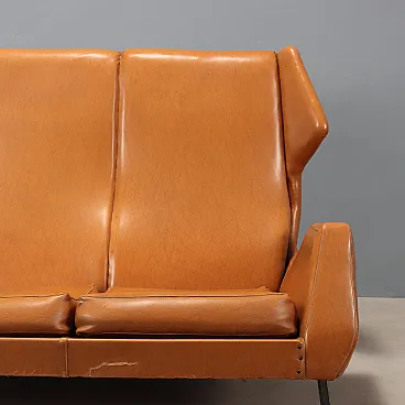 Divano a tre posti in espanso, skai e metallo smaltato, '900