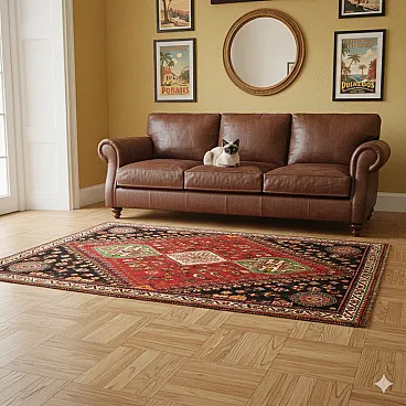 Tappeto Shiraz in lana, nodo grosso, realizzato a mano, '900