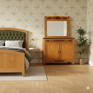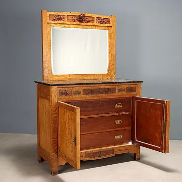 Cassettiera in rovere stile liberty in mogano e abete, primo '900
