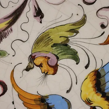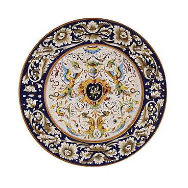 Piatto da esposizione in ceramica invetriata policroma, '900