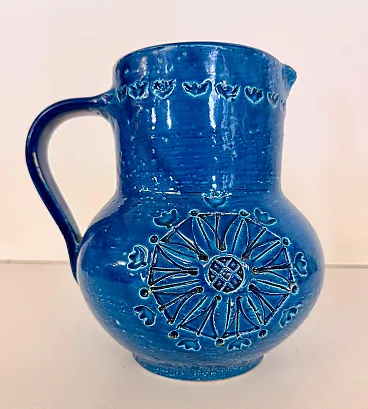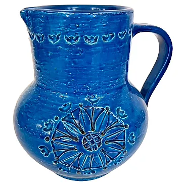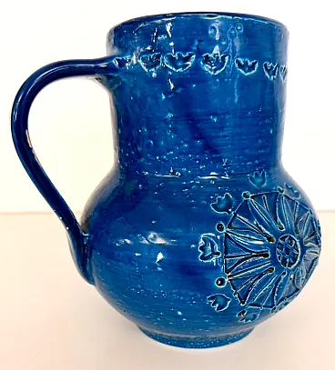 Brocca in ceramica laccata blu di Aldo Londi per Bitossi, anni '70