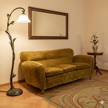 Divano in legno e tessuto con imbottitura in piuma, '900