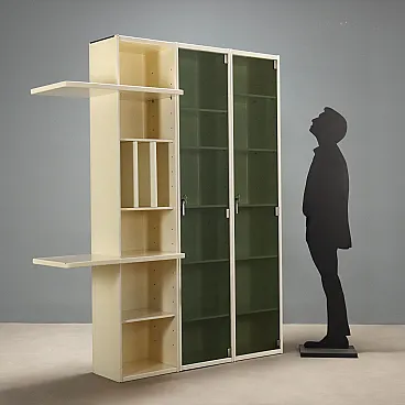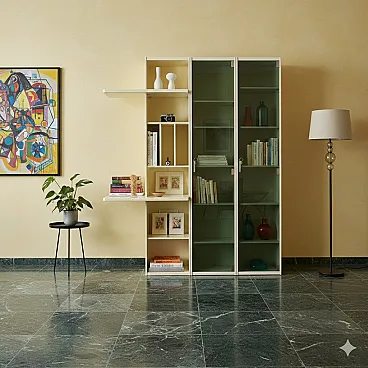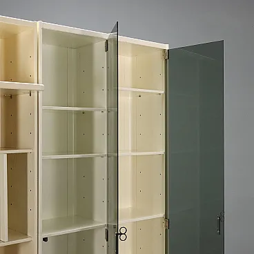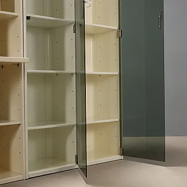 Libreria in legno impiallacciato laccato e vetro, '900