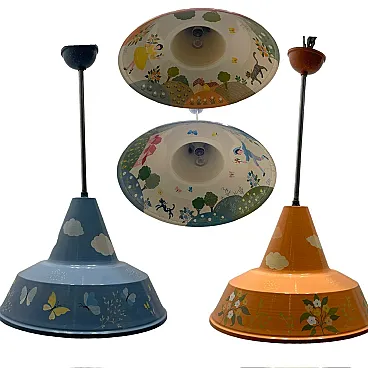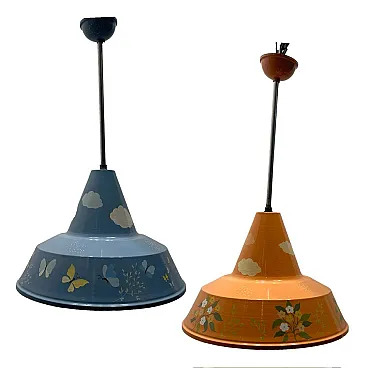 Coppia dil ampade a sospensione in metallo dipinto a mano, anni '80
