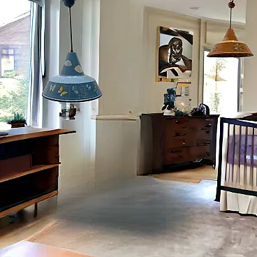 Coppia dil ampade a sospensione in metallo dipinto a mano, anni '80 13
