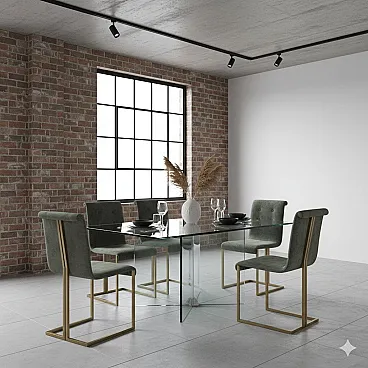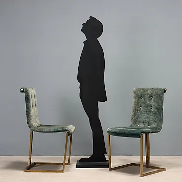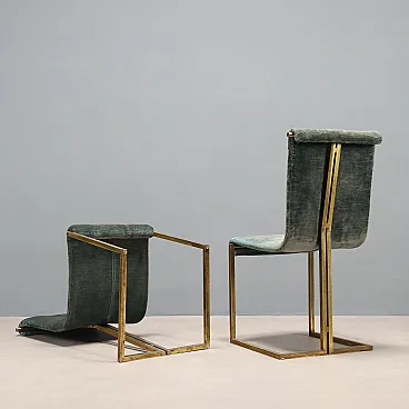 6 Sedie in metallo ottonato, espanso e tessuto, '900
