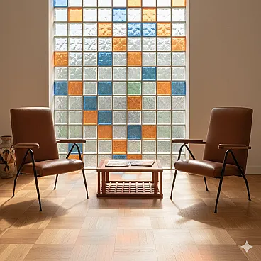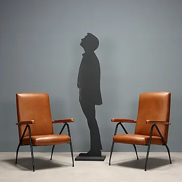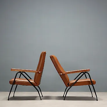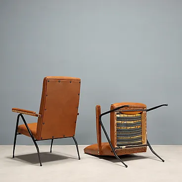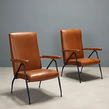 Coppia di poltrone in metallo laccato, schiuma e vinile, '900