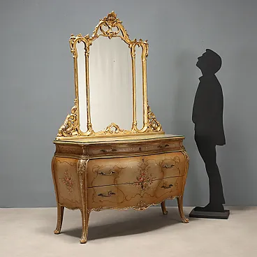 Comò barocco in legno dipinto, primo '900