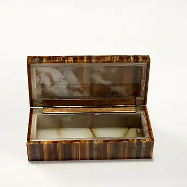 Scatola in pietra occhio di tigre con interno in onice, '900