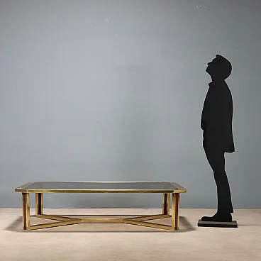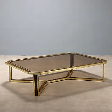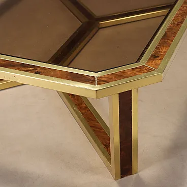 Tavolino in ottone, radica e vetro fumé, '900