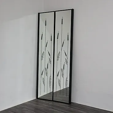 Elegantissimo specchio da parete composto da due moduli, raffigurante diverse spighe di grano retroilluminate da meravigliosi neon a luce fredda. In ottime condizioni conservative, presenti lievi segni del tempo dovuti all’utilizzo e all’età.