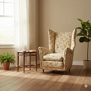 Poltrona in espanso e molle, piuma e tessuto, '900
