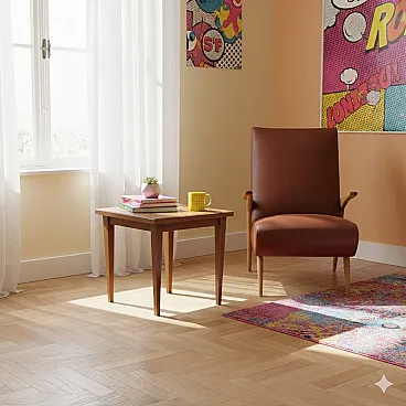Tavolino in legno con piano in vetro, '900
