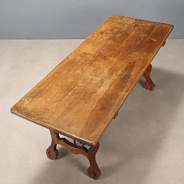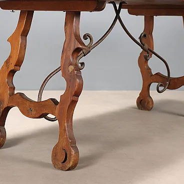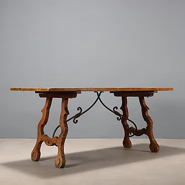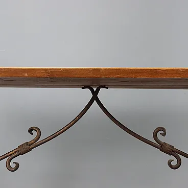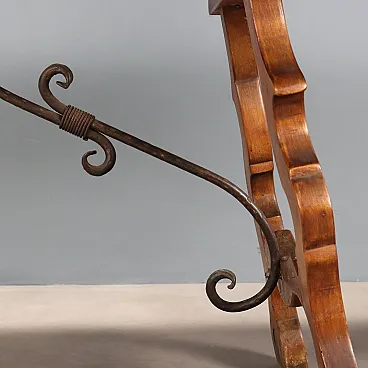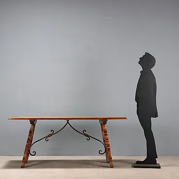 Tavolo fratino in noce e ferro battuto, '900