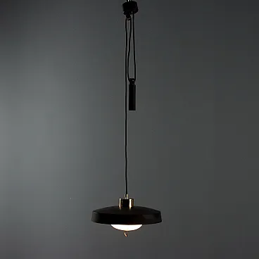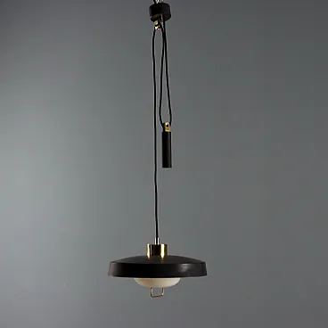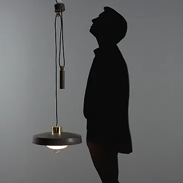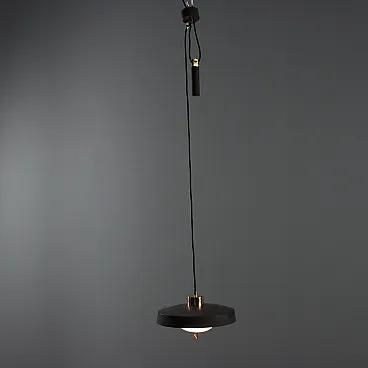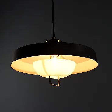 Plafoniera in alluminio smaltato, ottone e metacrilato, '900