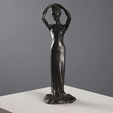 Fanciulla con le mani tra i capelli, scultura in bronzo, '900