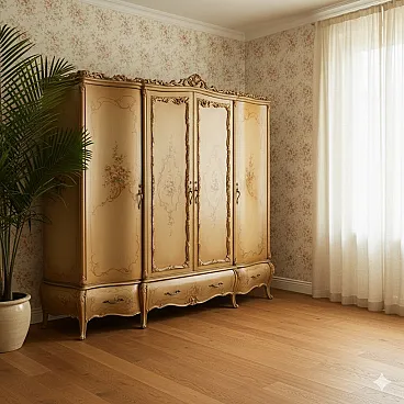 Armadio laccato e dipinto in stile barocco veneziano, inizio '900
