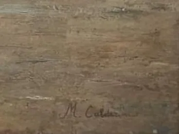 Paesaggio piemontese dipinto a olio su pannello di M. Calderini, '800