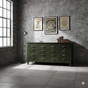 Cassettiera industriale in ferro, '900