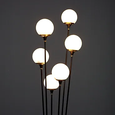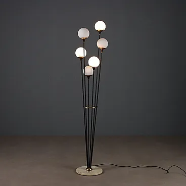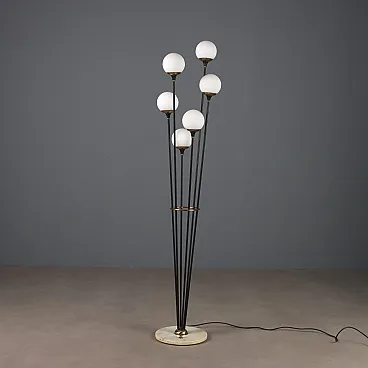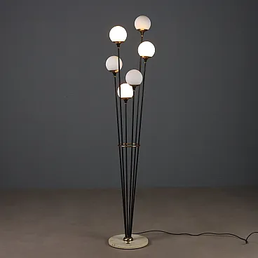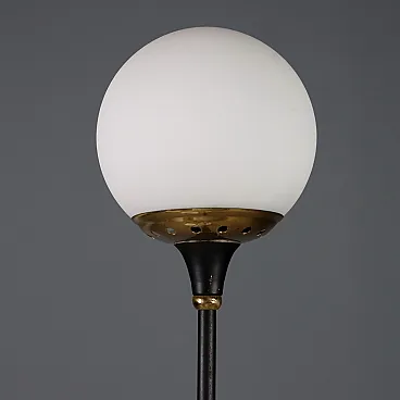 Lampada in marmo, metallo smaltato, ottone e vetro opalino, '900