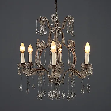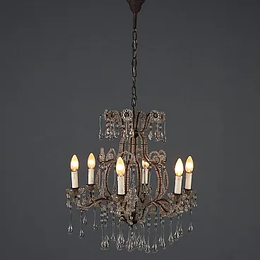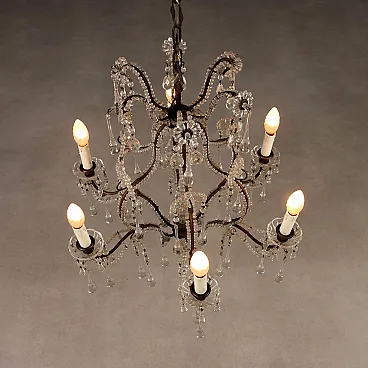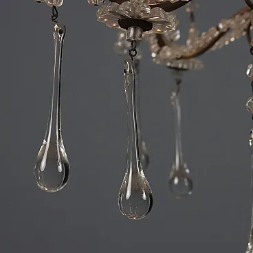 Lampadario in metallo brunito e vetro, fine '800